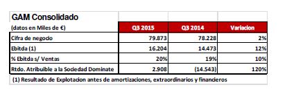 At the end of the third quarter, GENERAL DE ALQUILER DE MAQUINARIA – GAM - achieved a 2% increase in accumulated sales compared to the same period last year, totaling 79.9 million euros.