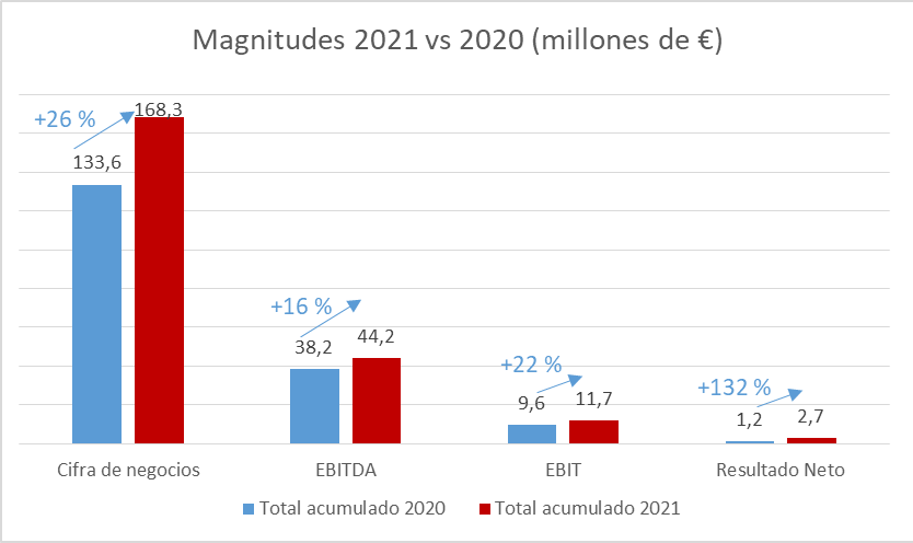 La compañía obtiene un beneficio de 2,7 millones (+132% sobre 2020)