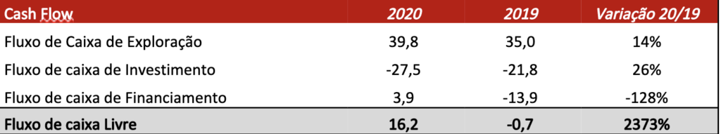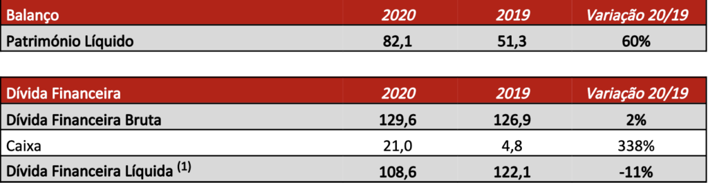 financeira líquida de 108,6 milhões de euros, inferior em 11% à de 2019, e que pressupõe a manutenção dos níveis de alavancagem semelhantes aos desse ano.